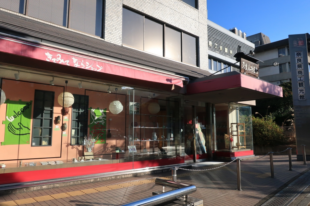 結構、大きな物産館だ。場所が近鉄奈良駅の道を挟んで北側にある奈良県商工観光館の一階にあり、利便性もいい。県レベルの組織が運営しており、商品ラインナップは全県版だ。奈良市内の特産品はもとより、吉野杉の箸、生駒の茶筅、三輪のそうめんなど工芸品、食品、雑貨などが県内各地から取り揃えられている。