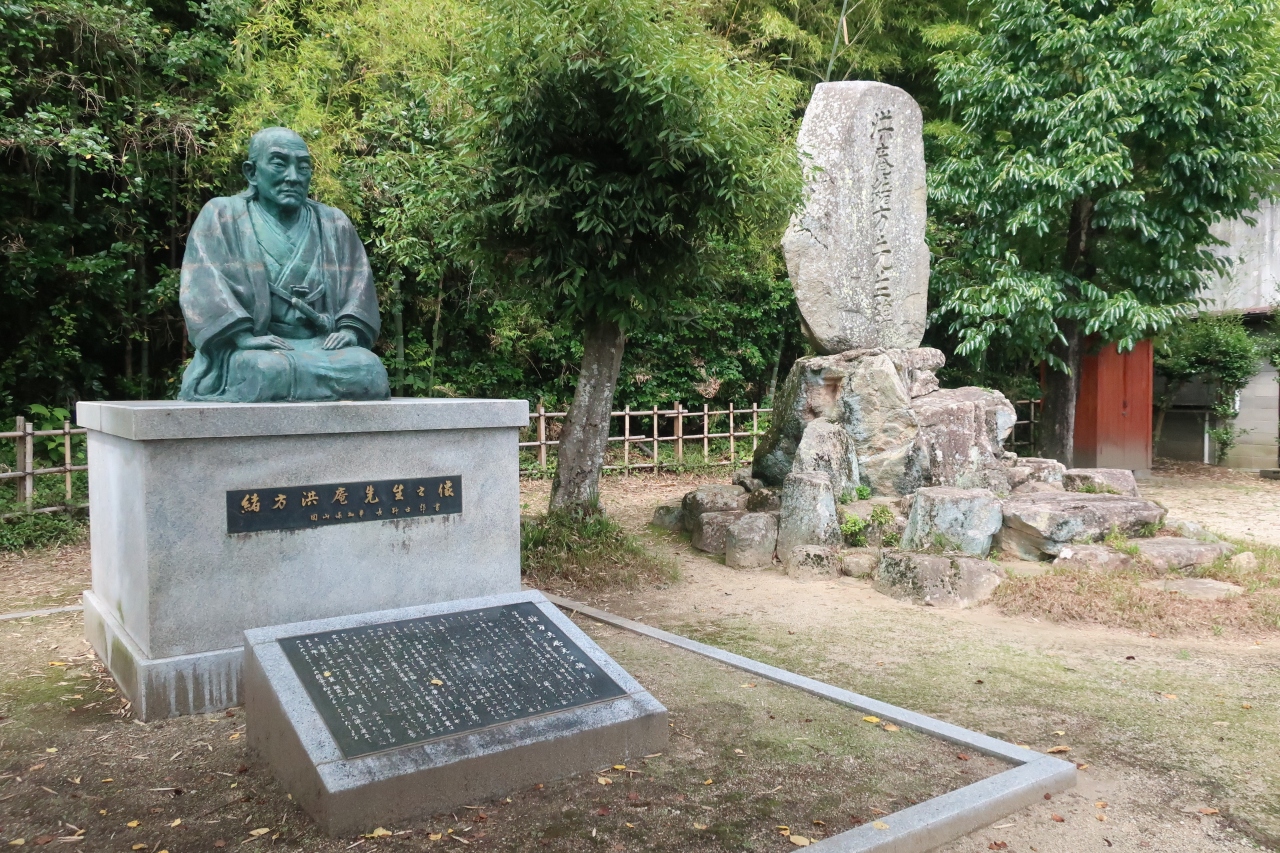 秀吉の水攻めで有名な備中高松城主・清水宗治の最期の地。兄や家臣2人とともに、小舟で高松城を出て羽柴勢の近くまで行き、舟の上で舞ってから最期を遂げたという。辞世の句は「浮世をば今こそ渡れ 武士の名を高松の苔に残して」。現在、自刃の地とされるお寺の一角には五輪塔が立てられ、近くには高い幟があげられていた。それにしても秀吉に攻められた毛利家の家臣は、宗治といい、吉川経家といい、劇的な最期と辞世の句を残している。何か不思議な一致を感じた。