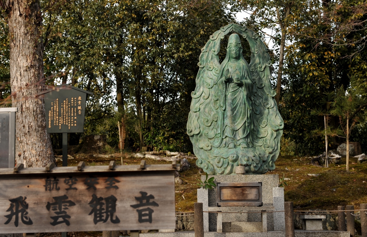 1980年に建立された観音さま。航空受難者すべての冥福を祈るために安置されたという。現地の説明版によると、東京芸術大学の西村功朝氏の作。最初は太平洋戦争で特攻隊などの航空戦で落命した人々の冥福を祈るためだったが、その後、航空受難者すべてに対象を広げた。遺族だけでなく、航空事業者の社員らも参拝するという。
