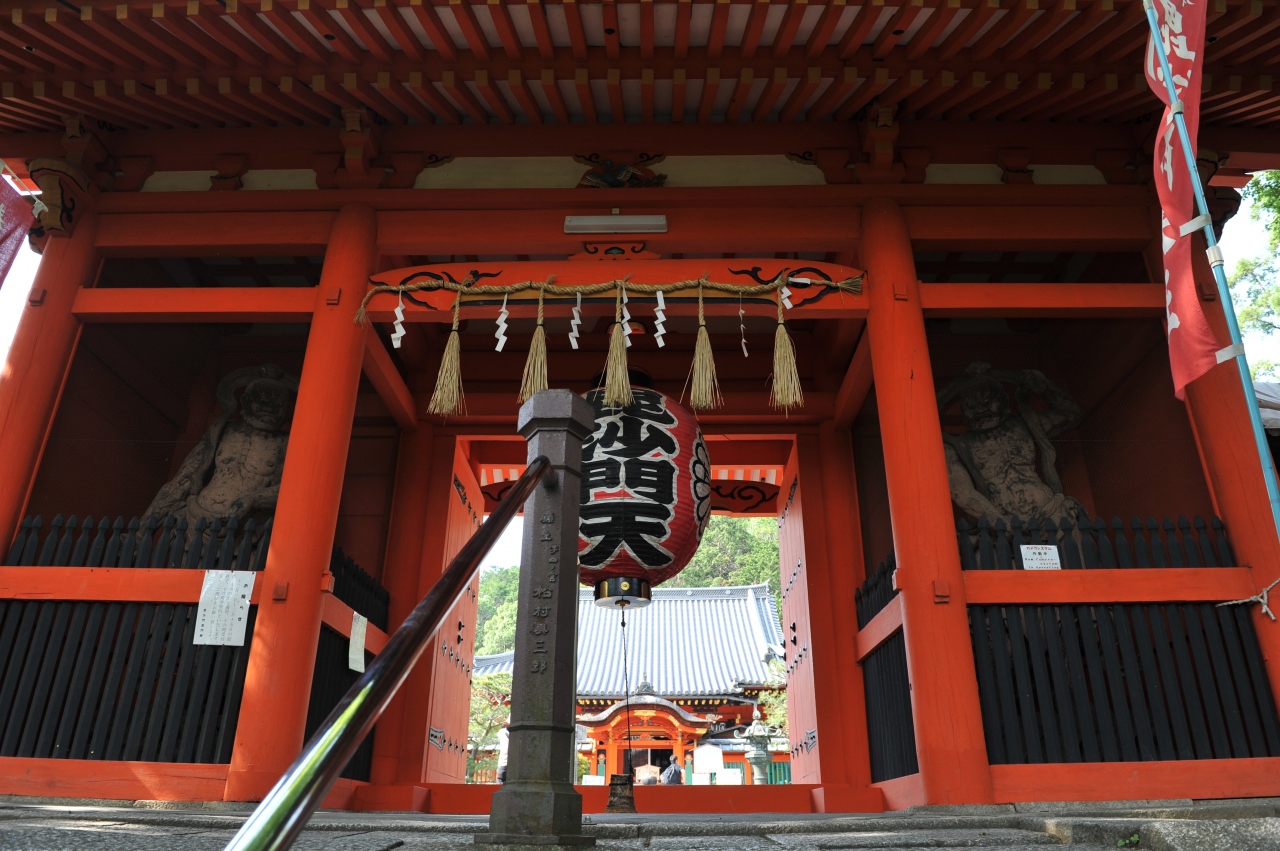 嵐山・渡月橋からまっすぐ北へ嵯峨野の方へ歩くと行き止まりのような場所に見えてくるのが、この仁王門だ。幅もある大きな二階門で、高さが約18メートルある。個人的にはこの門が見える風景は嵯峨野を代表する風景の一つだ。門の両脇には珍しく朱色に塗られたの仁王像がある。