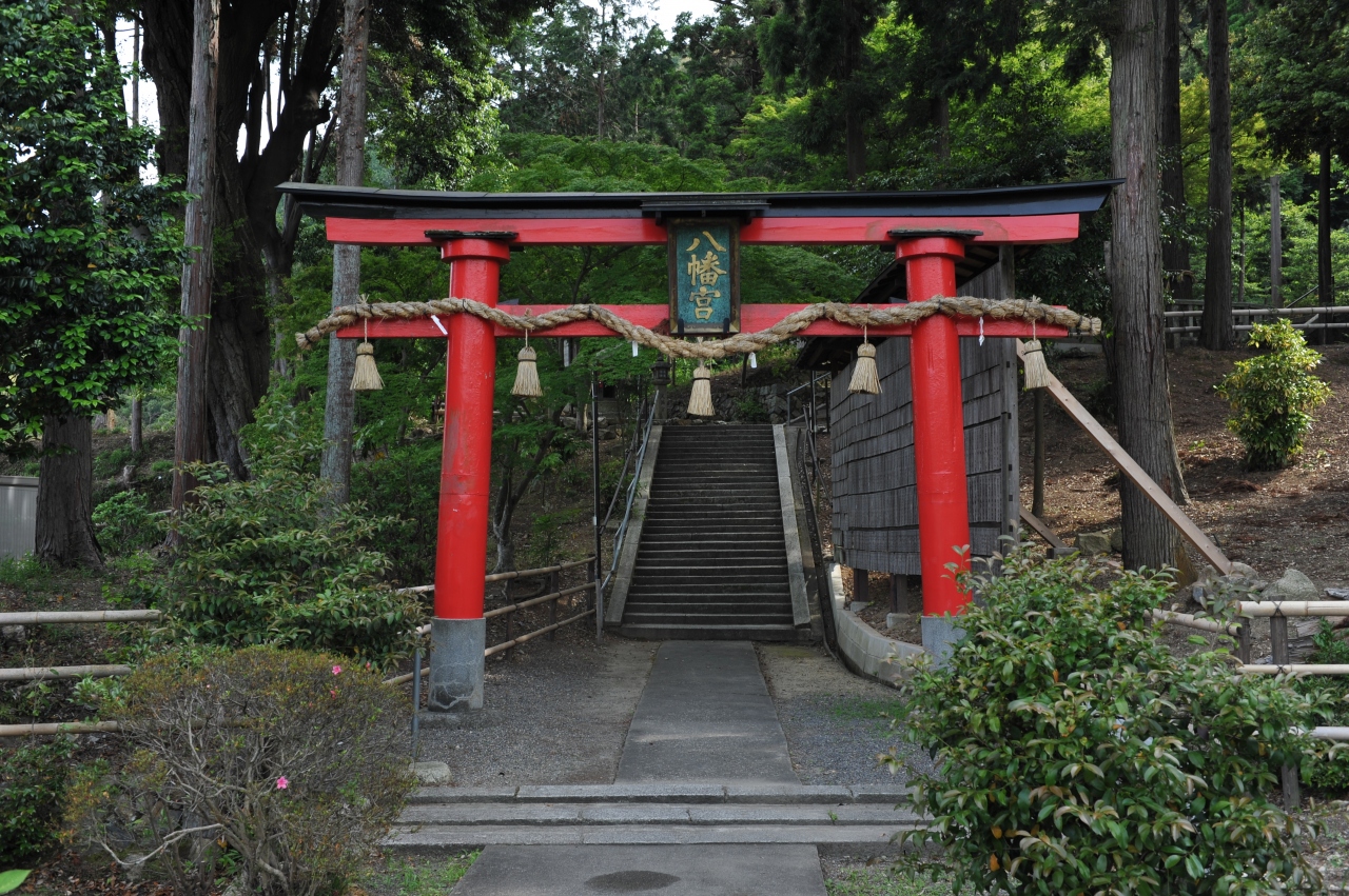 勧修寺を参拝し、佛光院で御朱印をいただいた後にふっと遠望すると赤い鳥居が。参拝すると消えかかった由緒書があった。平安時代の創建で、江戸時代までは勧修寺の鎮守社で、それ以降は地域の氏神として信仰を集めている。鳥居には「八幡宮」という扁額しかかかっていないが、「吉利倶八幡宮」とも呼ばれる。狛犬の代わりに建てられた弓が八幡宮らしい。
