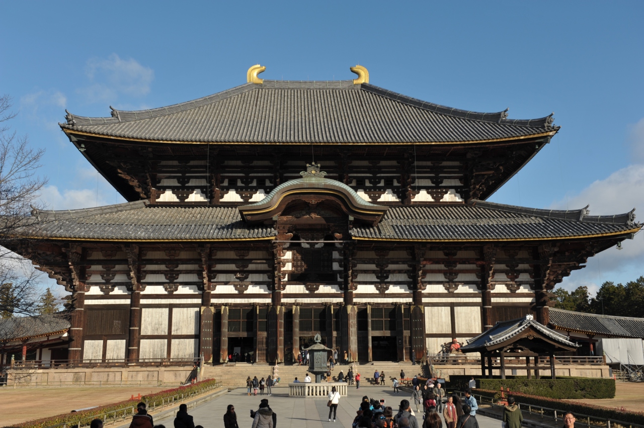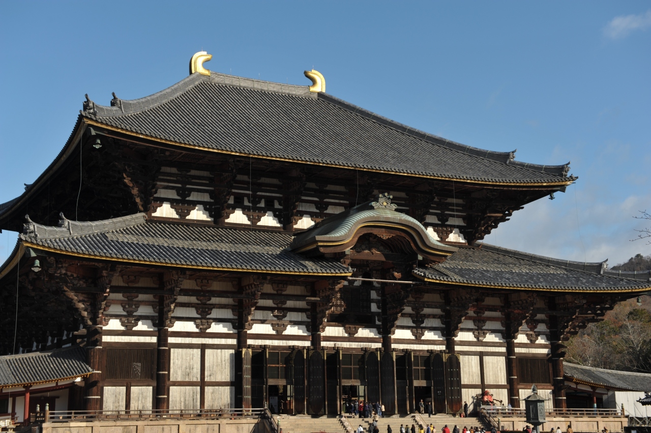 <日本>を象徴する建物の一つだと思う。これほど<日本>という記号を集約した建物は少ない。それこそ、子供のころの家族旅行で足を踏み入れて以来、何度も来ているはずだが、いつも圧倒されてしまう。大人になってもっと巨大なものを見ているのに、大仏殿を見るたびに気圧されるようだ。記憶の中の大仏殿よりも、いつも必ず大きいのだ。富士山もそうだが、これぐらいかなという浅はかな経験や記憶をはるかに破って大きい。今回も見上げたつもりだったが、それ以上だった。