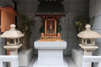 一見、氏神様のような小さな社が、ビルの正面に食い込むように建っている。千載和歌集などの編者として知られた歌人・藤原俊成を祭った社だ。俊成は平安末期の歌人だが、平清盛の弟で源平合戦で討ち死した平忠度とのエピソードが有名だ。都落ちの際、忠度は俊成に自作の和歌を百首以上委ね、俊成は世をはばかって「詠み人知らず」として千載和歌集に掲載したという。ビルに食い込むような立地はかなり異例だが、そうした歌人の思いが現代まで信仰される原因かもしれない。