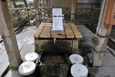 明治維新で活躍した三条実美父子を祭神とする梨木神社の境内に湧く名水だ。「醒ケ井」「県井」と並ぶ京都の三名水のひとつに数えられ、茶の湯にも適す水としても知られているという。京都御苑のそばにあり、もともと宮中御用の染所の水として用いられたことから、この名がついたとされる。梨木神社そのものの創建が新しいだけに、神社との関連はあまりないようだ。ただ、現地には茶室があり、月に一回、茶会が開かれている。現地にはご神水専用ボトルが販売してあり、これで持って帰った。水も授与品のようだ。