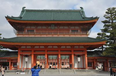 平安遷都1100年を記念して明治期に建設された。大極殿や応天門、蒼龍楼、白虎楼など唐様の壮麗な建築物が並び、映画『ラストエンペラー』の一場面のようだ。桓武天皇が平安京を開いた当時の政庁を少し小さくして再現したという。それだけに朱塗りがまぶしくエイジングの味わいはないが、テーマパーク的な楽しさはあるかもしれない。神苑は広大な庭で、別途入場料がかかる。もしも時間があれば見ておきたい庭園だ。