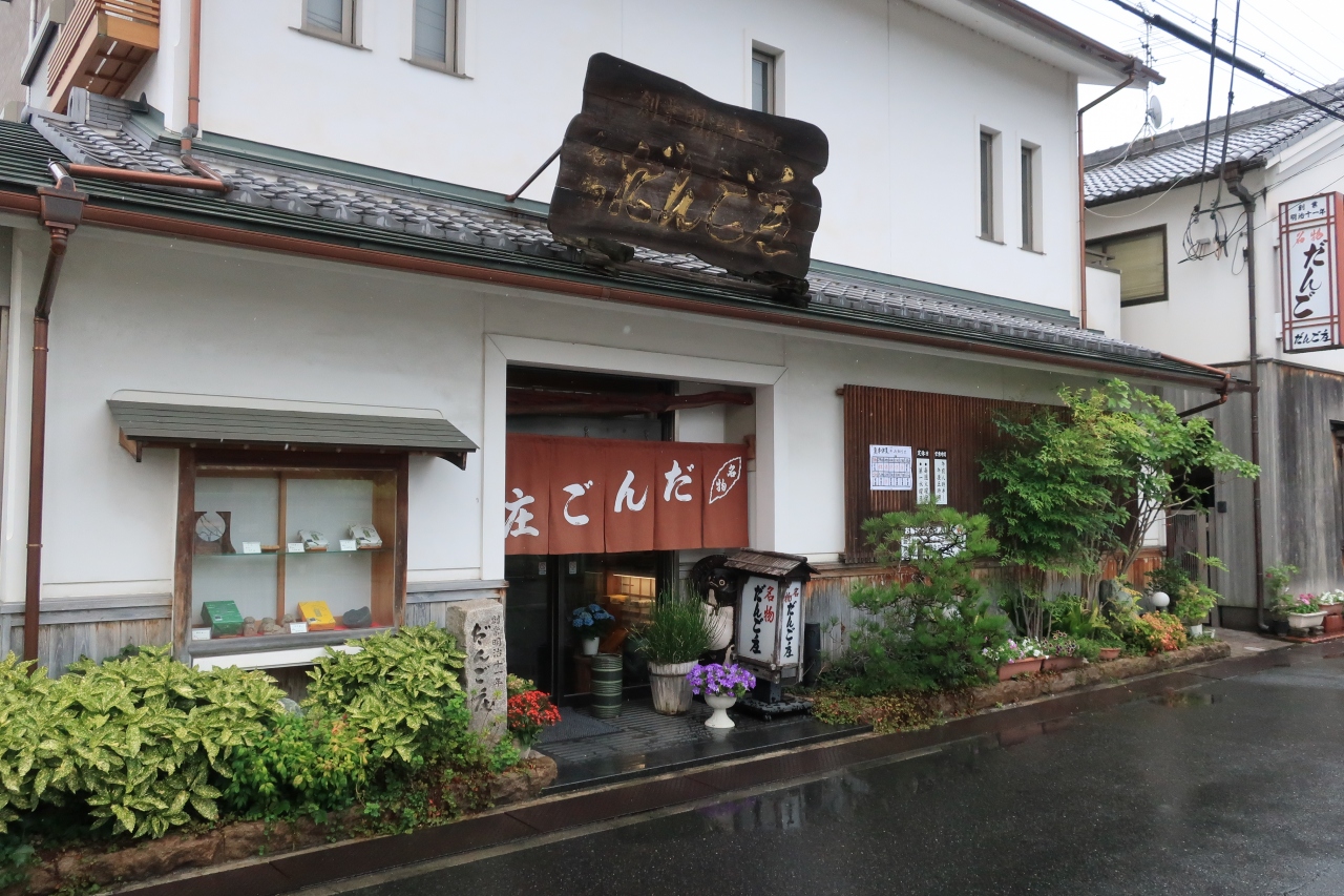 八木店に行ったことはあったが、今度は本店に行きたくてわざわざドライブルートを変更した。住宅街のそう広くない道沿いにある。八木店との違いはイートインがあることだ。全部で14本買い、10本を持ち帰りに、奥さんと2人で4本をその場で食した。ここのだんごは甘くなく本当に塩梅がいい。買いたてなのでことのほか柔らかい。入れていただいたお茶もおいしく。ホテルに帰って残りのだんごを開けたが、あっという間に平らげた。少ししなびてはいるが、きなこの味がしみているようでそれもまたよし。