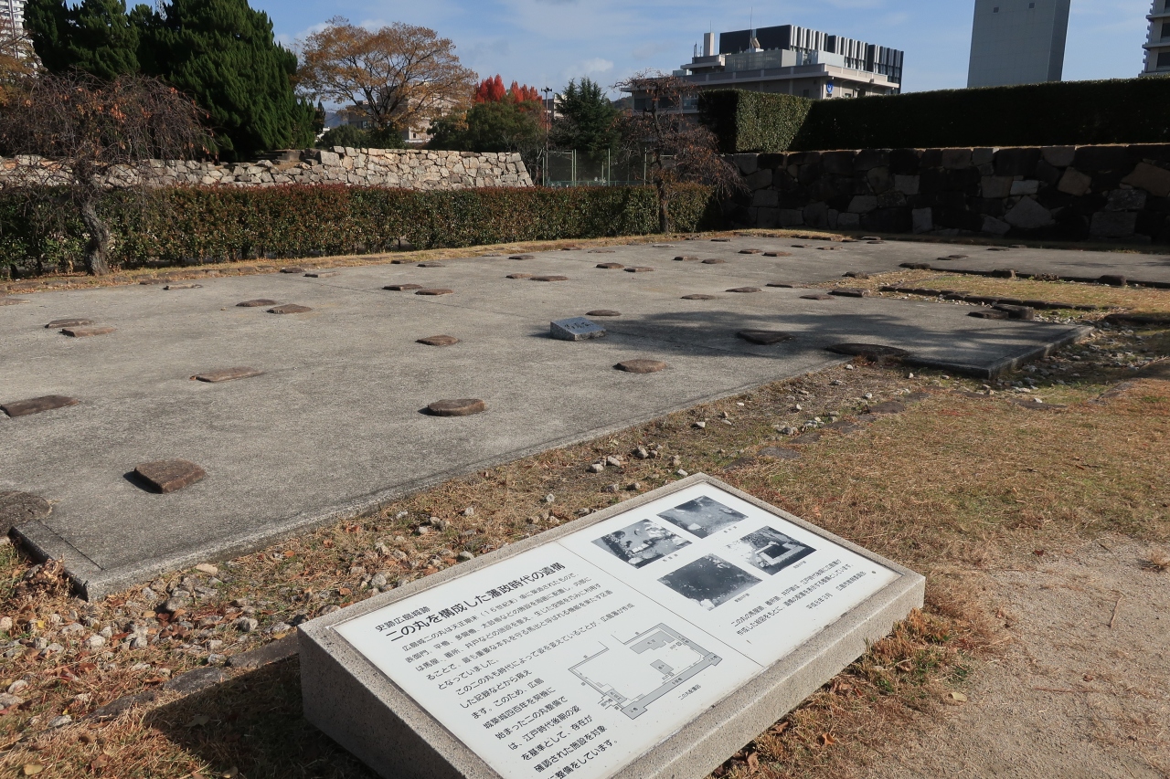なぜ、広島が原爆投下地に選ばれたのか。複合的な要因であることは明らかだが、建物の基礎のみしか残っていないこの史跡を観光し、ほんの一端だが、わかったような気がする。明治以降、広島城の敷地内には鎮台や軍団が置かれ、軍事の拠点化していたからだ。この大本営跡はそのことを雄弁に物語っている。広島城には戦国時代から江戸時代にかけての「城」と、明治以降の「大本営」という二つの視点がある。イマジネーションを働かせれば、平和記念公園と同じく、胸にずっしりとくる観光だ。