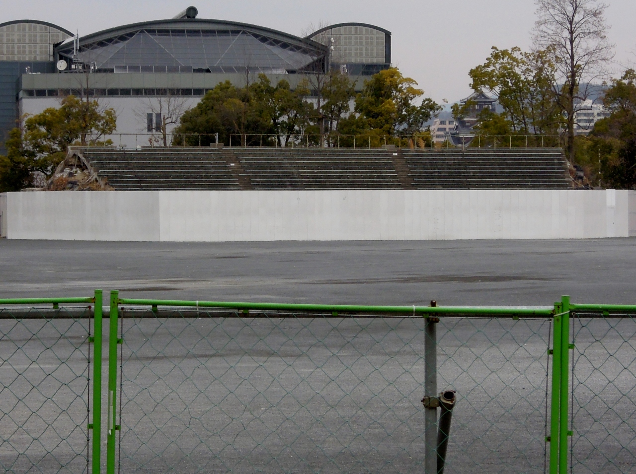 この日はメルパルク広島で会議があり、空き時間に上から街並みを見下ろした。本当にぽっかりと空いているのが、ここの跡地だ。建物を壊した後の敷地は狭く感じるものだが、ここの跡地は一層その感を強くする。ここが観光地かと問われれば少し迷うが、残されたライトスタンドに昔のカープに思いを馳せることはできる。