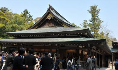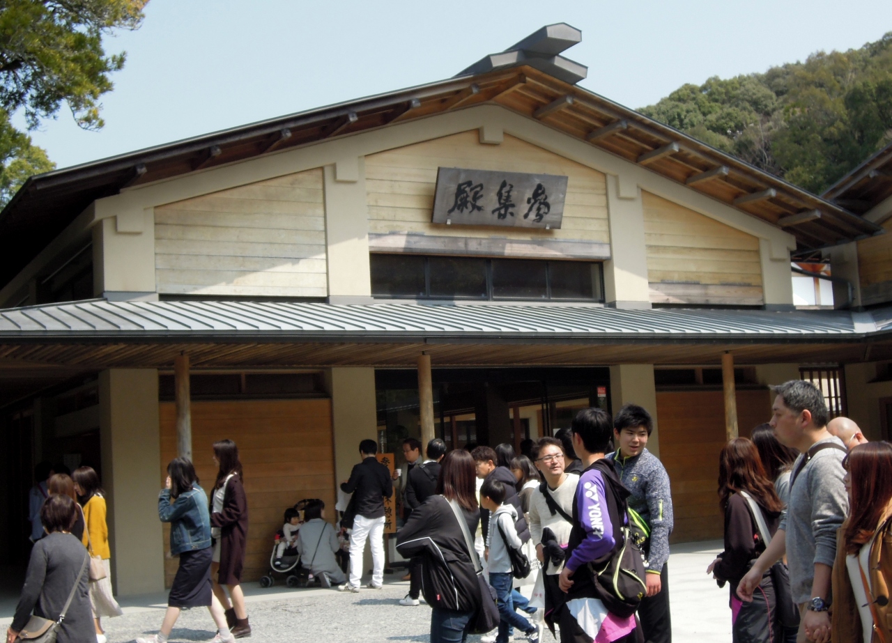 宇治橋から正宮に至る参道の中間点にある建物。この建物を見ると、ちょっと一服感を感じるから不思議だ。神楽殿のほか、お神札授与所やご祈祷受付などがある。ご朱印もここでいただく。ちなみにここではご朱印帳を販売していない。参集殿や神宮会館でご朱印帳を購入してから臨まないと、せっかく並んでも台無しになってしまうので注意。