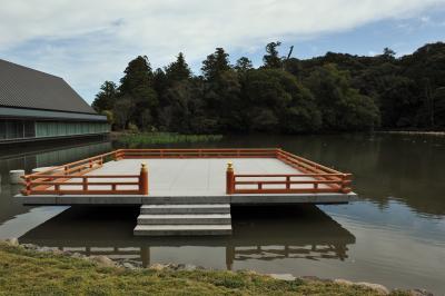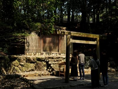 外宮の入り口付近にある。池のそばにたたずんでいたのではわかりにくいが、勾玉(まがたま)の形をしているのでまがたま池と呼ばれるようになった。訪れた時は3月だったので観賞できなかったが、6月には花しょうぶが開花し、秋には池の舞台で観月会があるという。この季節に一度は足を運びたいきれいな池だ。周囲には庭園や遊歩道が整備されており、散策する姿も。残念なのは池のほとりに建っている「せんぐう館」の休館が続いていることだ。