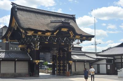 本願寺の堀川通に面した四脚門で、名前の通り門をくぐると御影堂の正面に出る。また、堀川通を挟んで反対側は門前町に通じるルートになる。隣りの阿弥陀堂門や唐門が金箔などの装飾が施されているが、御影堂門は質実な感じだ。