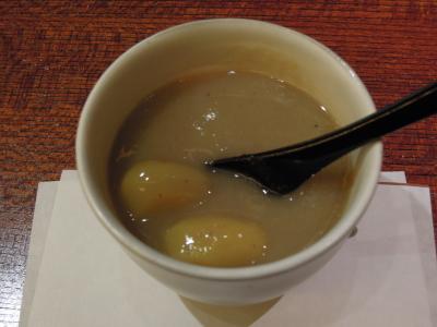 秋だけしか発売されない宝泉堂の「栗しるこ」。それを堪能するためにスケジュールを練った結果、新幹線改札内のこの店を選んだ。茶寮宝泉は水曜日、木曜日が定休なのに比べ、ここは年中無休だからだ。コンパクトな店舗で、入口に売店、奥に茶店というレイアウト。しずしずと運ばれてきた栗しるこは、甘い、おいしい。何とも言えない天然の甘味だ。決して安くはないが、この甘味の凝縮はどうだ。新幹線の入場券も惜しくない一品。また、出合いたい味だ。