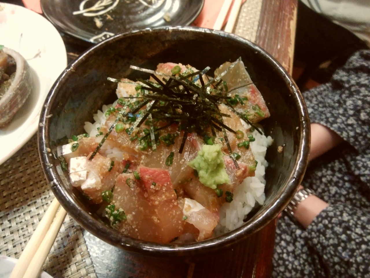 繁華街のビル地下にある。ドアを開けると5席ほどのカウンター席があり、奥に小上がりで3席ほどのテーブルがある。マスター1人に、アシスタントの女性1人というスタッフ。マスターはコックコートを着て洋食屋さんのようだが、メニューは至って和風だ。この日は城下カレイの刺身、ヒラマサのカマの塩焼き、トコブシのうま煮、春の野菜天ぷら、タケノコの土佐煮、琉球丼などをオーダーした。城下カレイは脂がのっており、甘く、絶品だ。旬のタケノコは言うに及ばず、春野菜、山菜など季節の味を満喫した。トコブシ、琉球丼と特産もいい。内装はスナックか小料理屋の居抜きと思われるが、料理の味とはアンバランスなカジュアルさだ。日本酒、焼酎も豊富で、機会があれば再訪したい店だ。