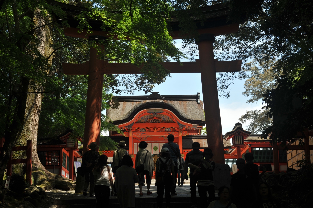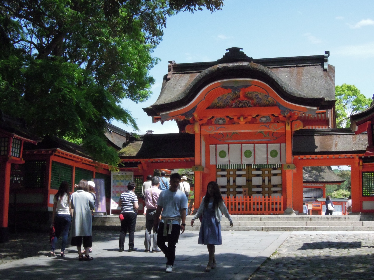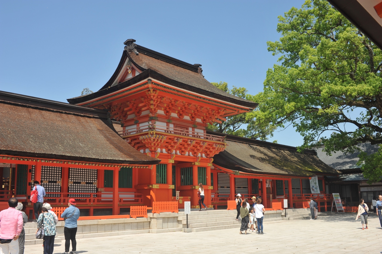 国東半島に広がる霊場の六郷満山。718年に開山したこの霊場は2018年で開山1300年を迎える。札所は31を数えるが、特別札所にして一番札所が、この宇佐神宮だ。霊場は宇佐神宮以外すべてお寺で、神仏習合が独特な文化を生み出している国東半島にふさわしいものだ。その昔、国東半島は宇佐神宮の神領だったらしい。神様の土地にお寺ができるのだから独特の宗教観があるのだろう。神社の駐車場から伊勢神宮と同じく神橋をわたり、境内へ向かう。社殿は八幡造りで、朱色が鮮やかだ。内宮、外宮があり、それぞれ三柱の神様に二礼四拍手一礼で祈りをささげる。御朱印帳もいろいろあるが、中でも六郷満山専用の御朱印帳が目を引いた。