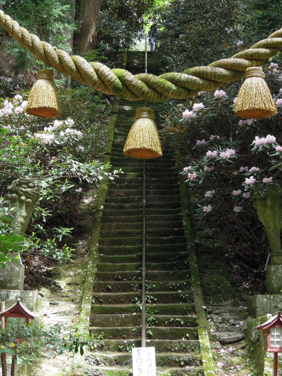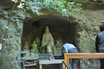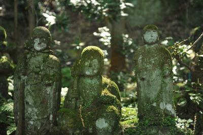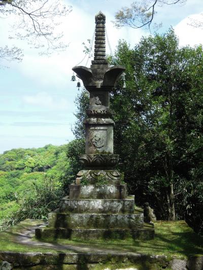 駐車場から始まる長い石段を登りきると、崖に放り込まれたように建造された舞台造りのお堂が見える。鳥取県の投入堂もそうだが、こんな建築ができる法力があるのは役行者しかいないと思っていたら、本当にそうだった。本堂にお参りする前に順路があり、役行者に手を合わせてから本堂に足を踏み入れる。本堂から少し下りて行ったところに鐘やご神木、巨大な宝篋印塔がある。また、ここの石造物はとくに苔むしており、風情がある。両子寺から向かったが、ナビの案内では一度、海沿いまで下りるルートを案内する。地図上では二つの寺院は近いが時間設定に注意。