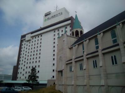 市街地を一望する立地が特徴の都市型ホテル。結婚式や会議利用も多い老舗という印象だ。眺望はいいのだが、繁華街からやや離れており、ふらりと名物を食べに町をぶらつくというわけにはいかない。館内のレストランか、バスで街に出るか、飲酒を我慢して車で食べに行くかという選択だ。施設はやや古いが、造りはゴージャスなタイプ。平日に宿泊したが、旅行会社のサイトで非常に安いプランが発売されていた。