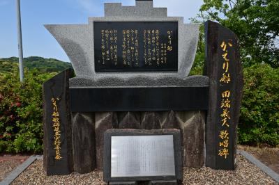 終戦後、海外から約629万人の日本人が引き揚げてきたが、そのうち約139万人が佐世保に上陸したという。そうした歴史的な事実を刻む公園だ。少し高台にあり、公園内から引揚港が展望できる。訪れたときは改修中だったが、資料館のほかシンボルとして「平和の女神・引揚げ者家族」像がある。女神の足下に家族3人の像があるが、恐らくは引揚を喜ぶ姿だろう。地元長崎県・壱岐出身の小金丸幾久の作。一角には歌手の田端義夫の「かえり船」の歌碑も。従軍していた田端は佐世保から引き揚げたという。