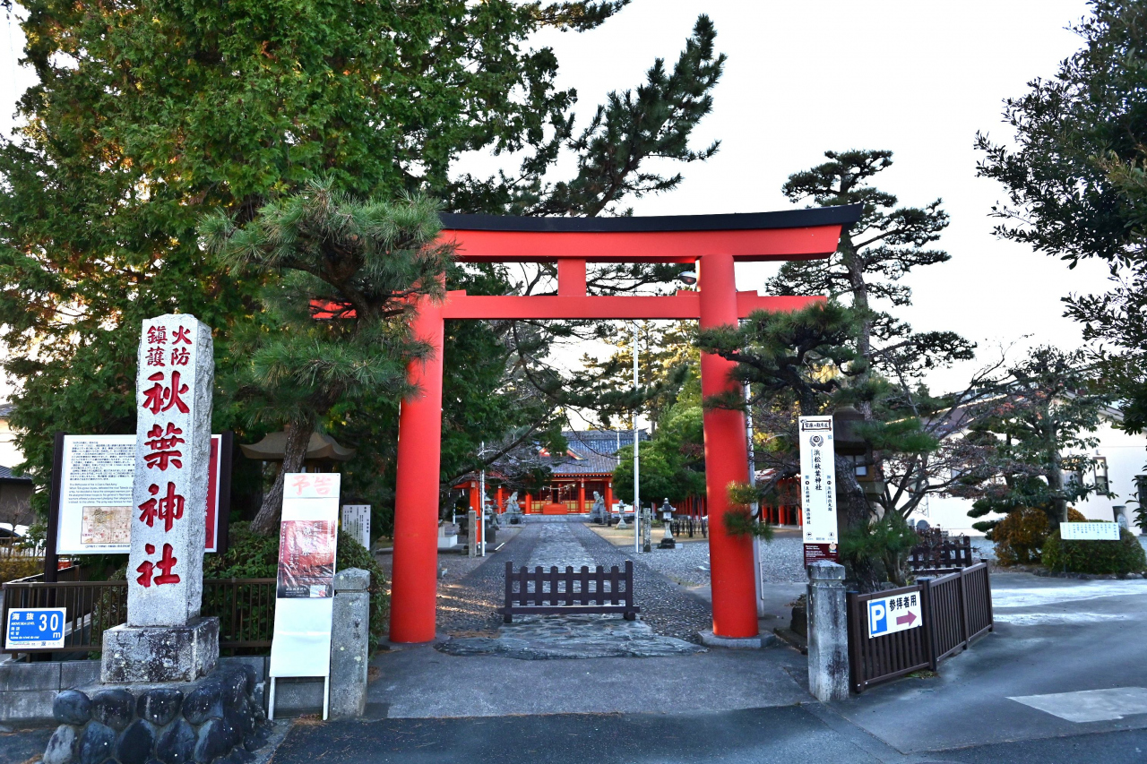 現地では徳川家康ゆかりの神社として紹介されていた。濱松秋葉神社は、浜松城が築かれた1570年に家康の命で創建された。社名でわかる通り、全国の秋葉神社の総本宮である秋葉山頂の秋葉神社から勧請した神社だ。この地は浜松城の裏鬼門(西南)にあたり、武運長久と城下の安全を願った。現地を訪ねると、そう大きくはないが、端正な姿の朱塗りの社殿がとても雰囲気がある。