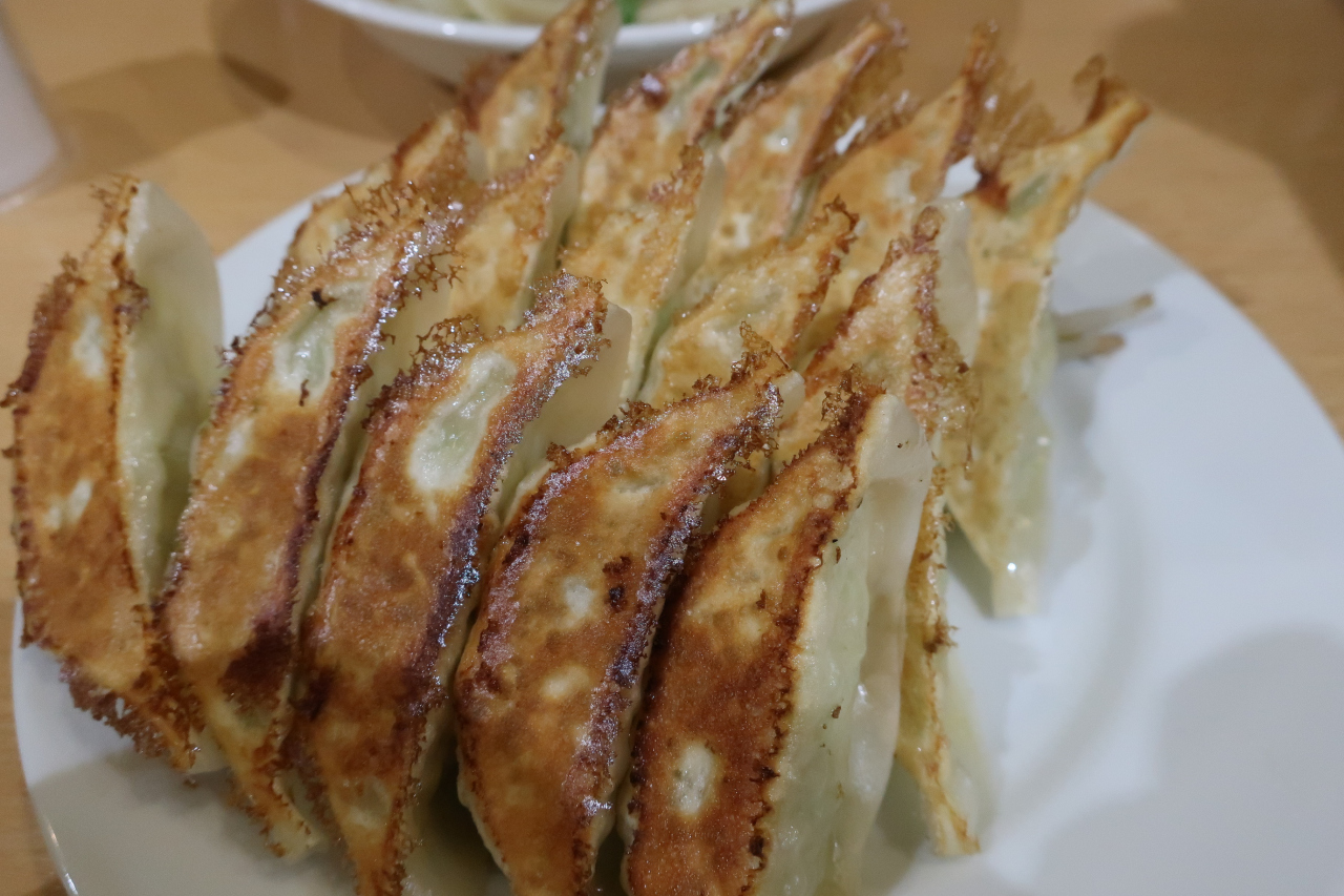 浜松滞在中、2度通ったが、いずれも列ができていた。さすがの人気店だ。が、いざ並んでみると、客の回転は速く、ストレスはない。餃子メニューは焼き餃子、水餃子、ゆで上げ餃子があり、このうち焼き餃子は、20個の餃子を円形に焼いた「車盛り」と通常の直線状に焼いた「石松餃子」ーの2種類ある。2回の訪問で2種類の焼き餃子と水餃子を食べた。共通して感じたのはキャベツの甘みだ。がっしりとかみしめるキャベツは他エリアの餃子にはない特徴だ。