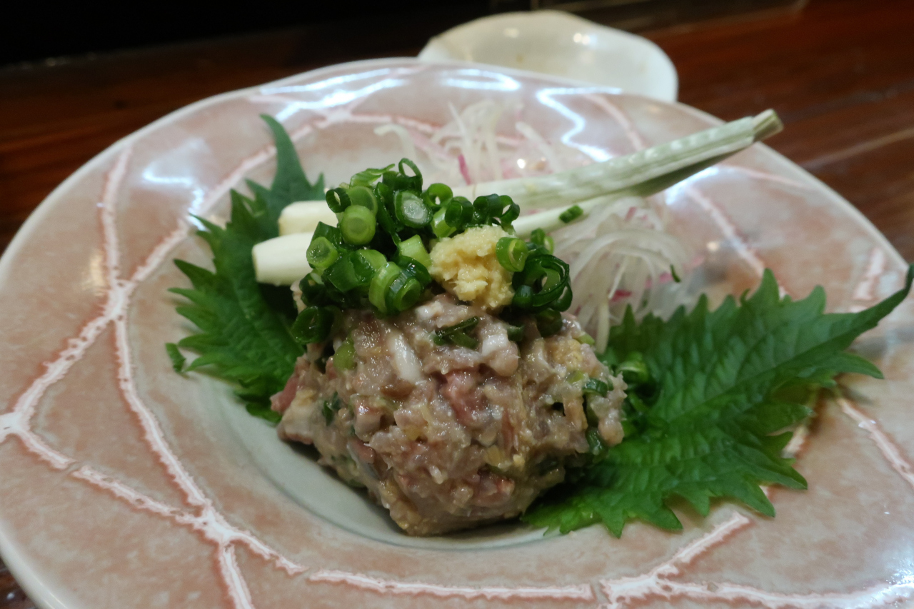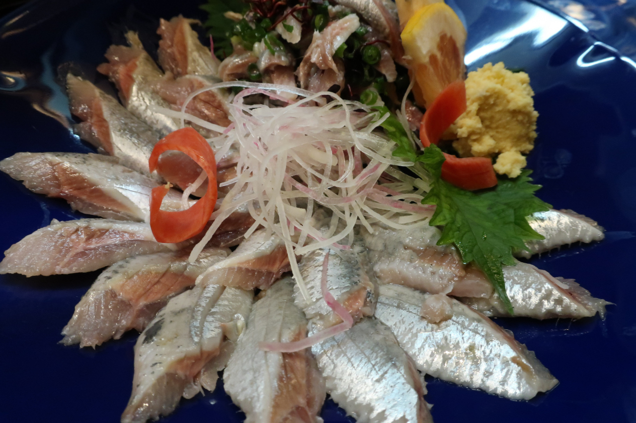 最近は高額になりつつあるイワシだが、かつては安価でおいしい魚の代表だった。ただ、足が早いことから煮つけなどで出されるのが一般的だった。それがゆえに、刺身で出される店に出合うと、ラッキーと思ってしまう。この店もそうだ。さらに西日本で育った身から言わせてもらうと、イワシのたたきやイワシのなめろうなどは出合ったことがない。入店する前からオーダーは決まっていた。オーダーしたのは▽イワシの刺身▽イワシのなめろう▽イワシのたたき▽大羽イワシの塩焼き▽あぶり黒はんぺん▽サクラエビの唐揚げ▽いい感じで焼いたタコーなど。付け加えると、ここの突き出しは非常にごちそうで、素晴らしい。奥さんと二人ですべてを平らげて、本当に満足した。日本酒もそろっており、痛飲した。次回浜松に行くことがあれば、必ず寄りたい店になった。