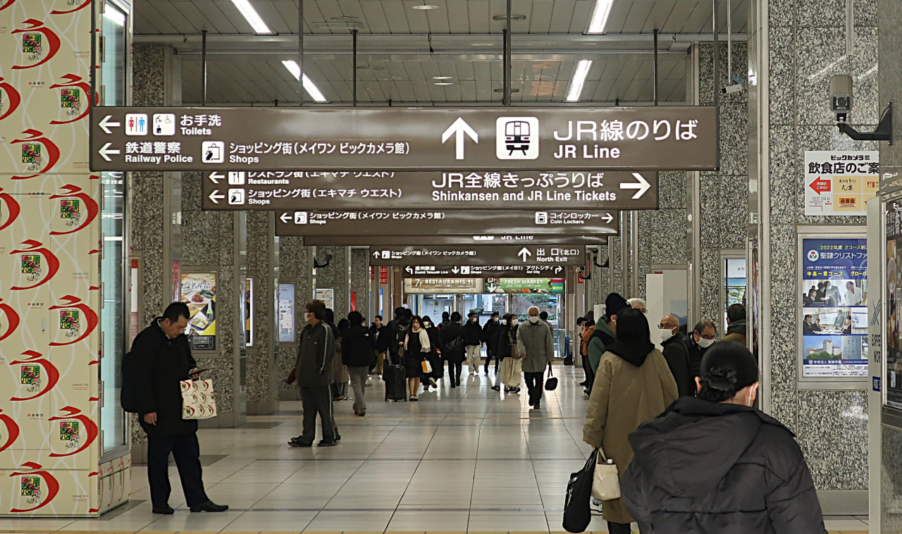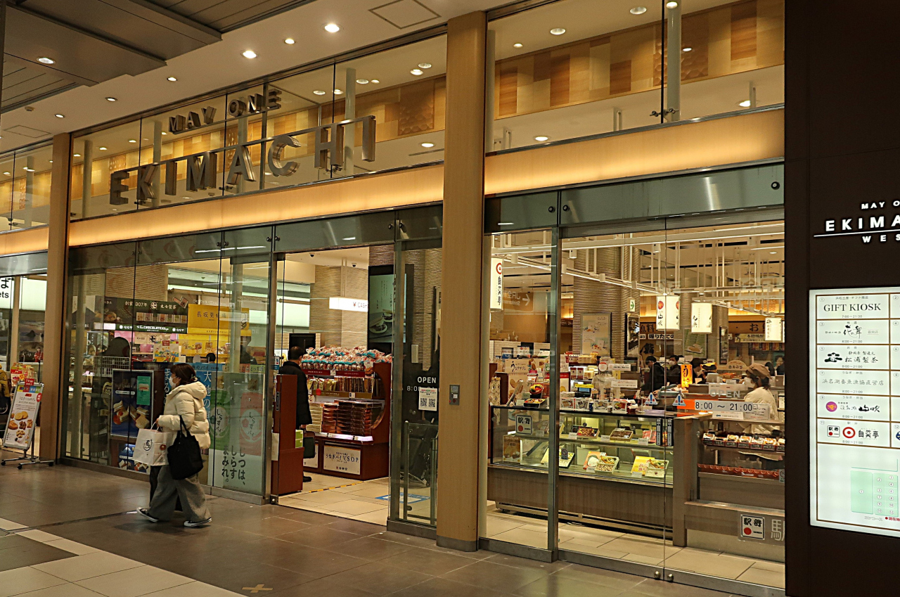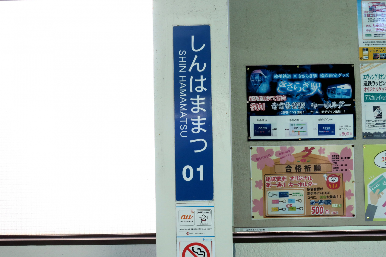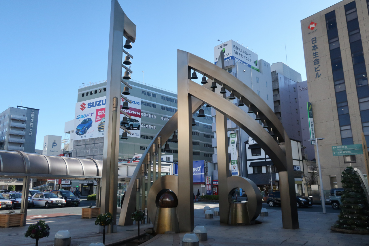 浜松駅は南北を貫く高架駅で、一階はストリートになっているタイプだ。新幹線と在来線が同じ駅にある。他の駅と異なる点は、企業PRの存在だろう。新幹線構内には浜松を代表する世界的メーカー三社が順番でPRブースを構えているし、コンコースの柱一本に横たわるような「うなぎパイ」のディスプレイが展示されていた。