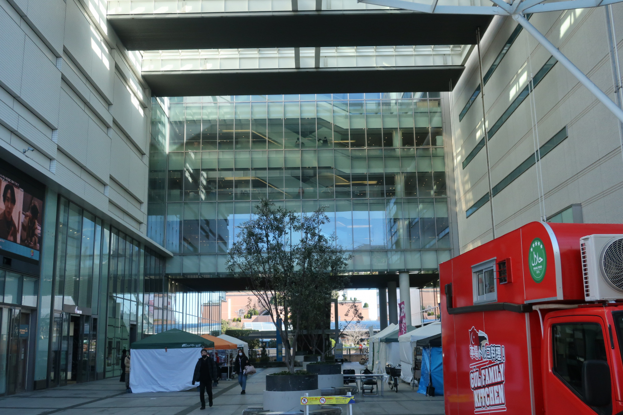 遠鉄百貨店の新館と旧館、新浜松駅の間に広がるイベントスペース。大屋根をつけた全天候型の快適なエリアだ。初めて訪れたときはキッチンカーが多数出展するイベントが開かれており、多くの市民が繰り出していた。駅、バスターミナル、百貨店に囲まれているだけにアクセスは抜群だ。歩行者用通路としても機能している。