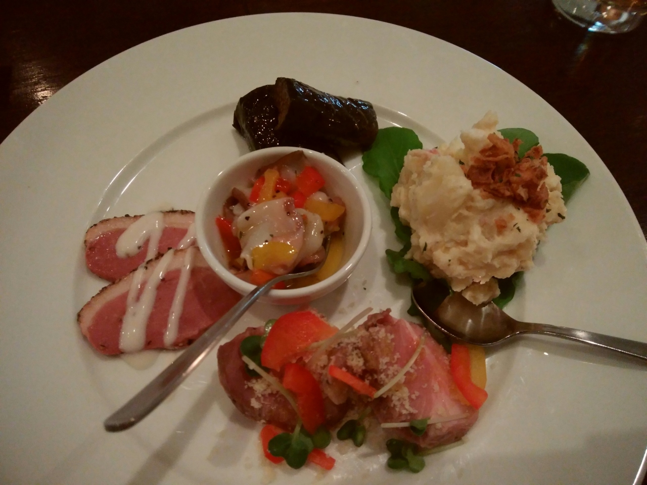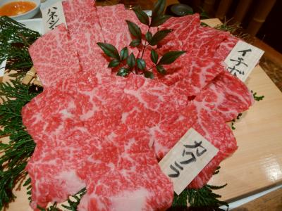 この日は地元の友人の勧めで繰り出した。確か6800円のコースをオーダー。焼肉というとボリューム満点というイメージだが、ここはおいしいものを少しずつゆっくりと堪能するタイプだ。最初の牛肉の握りがいい。少しあぶった薄い牛肉を広げてシャリを包んだような一品で、上々のスタートだ。希少部位の焼肉、しゃぶしゃぶ、地元野菜などを十二分に満喫した。締めは意外性を狙ってカレーうどんをセレクト。が、友人が選んだガーリックライスがいけた。個人的にはこちらがお勧めだ。