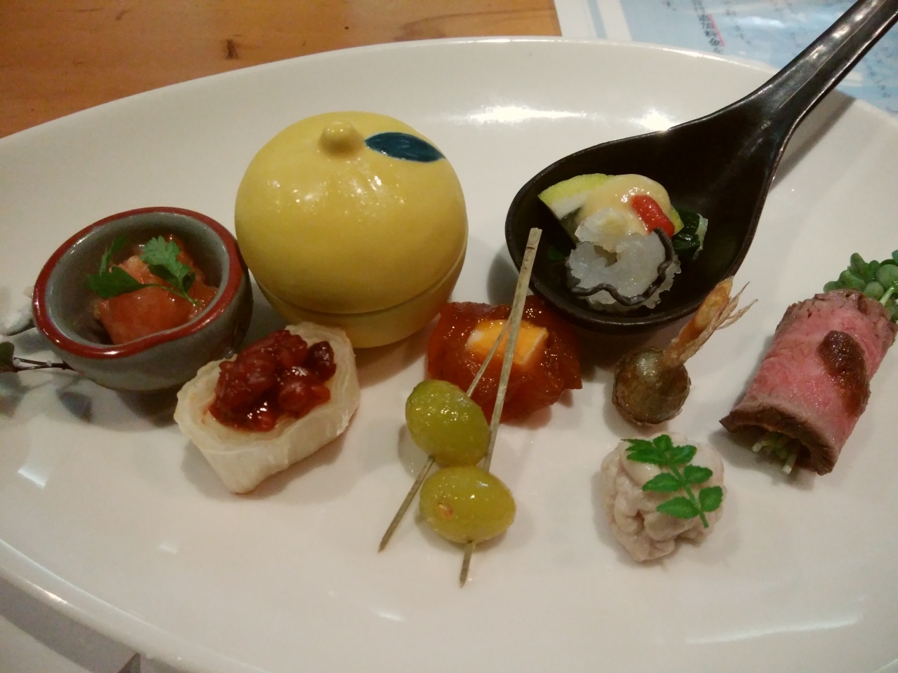 新しくできたJR新白島駅そばにある。集合住宅が林立するかいわいにあり、隠れ家的なおしゃれな外装で、凝ったしつらえだ。この日は5500円の飲み放題付きコースを友人8人でオーダー。おしゃれな先付や握り、刺身などを堪能した。掘りごたつ風のテーブル席やしっとりとした雰囲気のカウンターなど近所にあったら夫婦でよく使うタイプの料理店だ。
