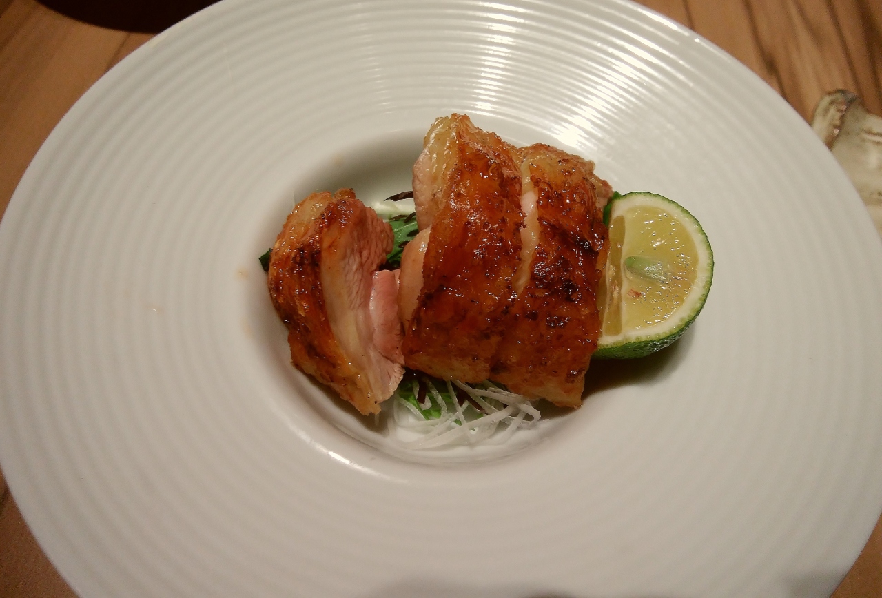 久し振りに会うので落ち着いて話したいと、グルメの友人がセッティングしてくれたのが、この店だ。赤坂見附駅にほど近い立地に加え、個室仕立てのしつらえがよかった。秋田の比内地鶏を取り扱う鶏料理店で、焼き鳥のほか刺身、ローストした鶏料理など和食仕立ての創作系コース料理が楽しめた。結構、日本酒の取り揃えがよく、かなり過ごしてしまった。