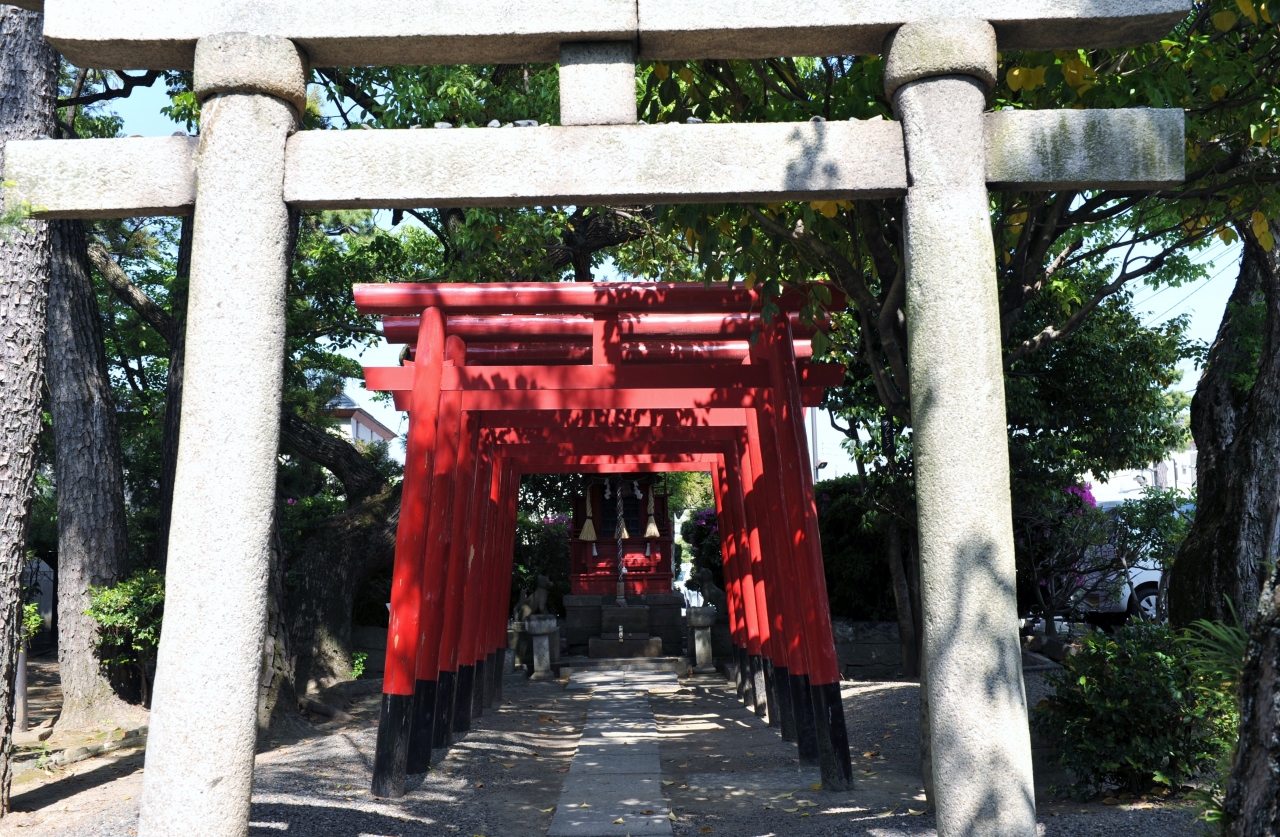 「羽黒」という社名が変わっているなと思っていたら、やはり出羽神社を勧請したものだという。玉島の干拓を手掛けた備中松山城主の水谷勝隆が干拓の成功を祈願して神社を建立した。拝殿が印象的だ。唐破風の向拝が車寄のように突き出ており、装飾がものすごい。龍はもとより、サル、タカ、からす天狗などが屋根に飾られている。本殿東側の松はおみくじを結ぶと願いがかなうとか。玉島の町を見下ろす高台にあり、町が一望できる。参道が複数あるが、いずれの参道も玉島の商店街とつながっており、門前町が現代の商店街として発展したようだ。
