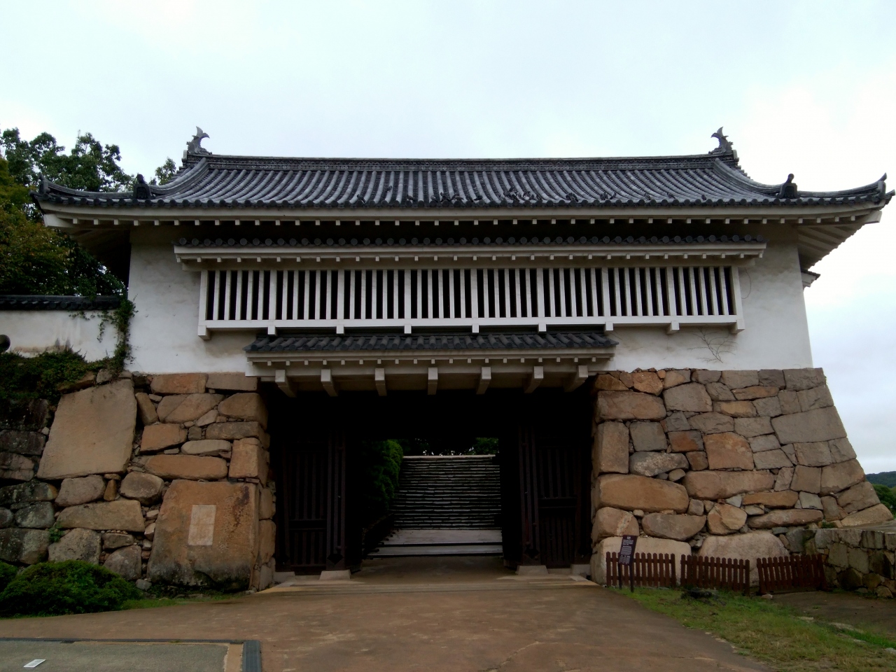 現地の説明によると、1968(昭和41)年、天守閣と同じく鉄筋コンクリートで再建されたらしいが、そうとは思えない貫禄がある門だ。不明門と書いて「あかずのもん」と読むが、これは常時と閉ざされていたことからこの名がついた。往時の登城ルートは不明だが、現代はここが正門のようだ。くぐって上がると、天守閣が正面にそびえる。