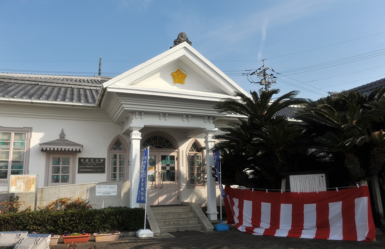 元警察署というが、白亜の外壁と洋館風の意匠がリゾートっぽくて牛窓らしい建物だ。朝鮮通信使が寄港した牛窓の歴史を展示している。人形を使って当時の一行の様子を再現したほか、寄港がもたらした踊りなどの文化が紹介されている。また、船形だんじりの龍頭はペーロン船を連想させる。長崎から伝わってきたという相生のペーロンやと牛窓の船形だんじり。伝播のルートはさまざまだが、伝わった先で表現される「龍頭」が一致しているのは面白い現象だと感じた。