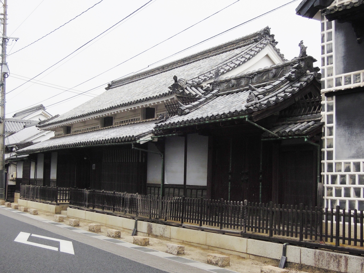 旧山陽道の宿場町として栄え、往時の姿をそこここに残す矢掛の中心的な施設だ。本陣と脇本陣がそれぞれ往時の姿を残して国の重要文化財の指定を受けているのは全国でも矢掛町だけ、という。高草家は本陣から東に400メートル離れた場所にあり、往時は金融業で財をなした。土曜、日曜日しか公開しておらず、残念ながら平日に訪れたため、中を見ることができなかったのは残念。横にものすごく長い平入りの屋敷は、蔵造りの白壁が印象的。街道沿いから裏に回る道があるが、白壁の中を通るような雰囲気で、思わず写真を撮った。