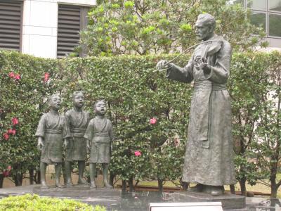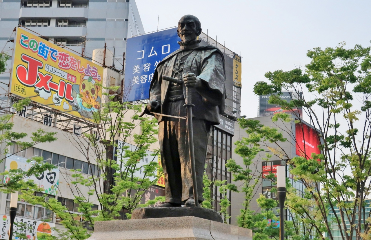 駅前にはその街のヒーローの像が立っているものだ。岐阜駅前の織田信長、甲府駅前の武田信玄、静岡駅前の徳川家康。そして大分駅前には大友宗麟像が立っていた。2011年にも訪れたことがあるが、今よりも台座がかなり高く見上げるような感じだった。今回、久し振りに訪れたが、駅も建て替わり、像の位置も変わっていた。また、見上げるような場所にあった像も、台座がだいぶ低くなり、印象も随分違った。親近感が増したような感じだ。洋装の戦国大名はいかにも時代の転換期にふさわしい。