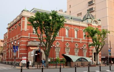 外壁は赤レンガに白い石の帯、屋根にはドーム。典型的な「辰野式」の建築だ。旧二十三銀行の本店として大正年間に建設された。改修を重ねているが、建設当時の赤レンガなどを使用しているという。すでに銀行の機能はなく、県産品の販売やコーヒーショップが入居していた。京都の三条通にあるようなレトロ建築だ。