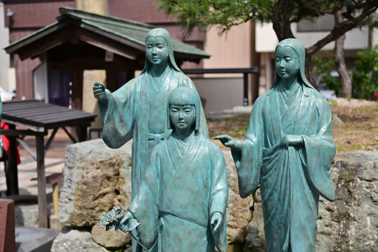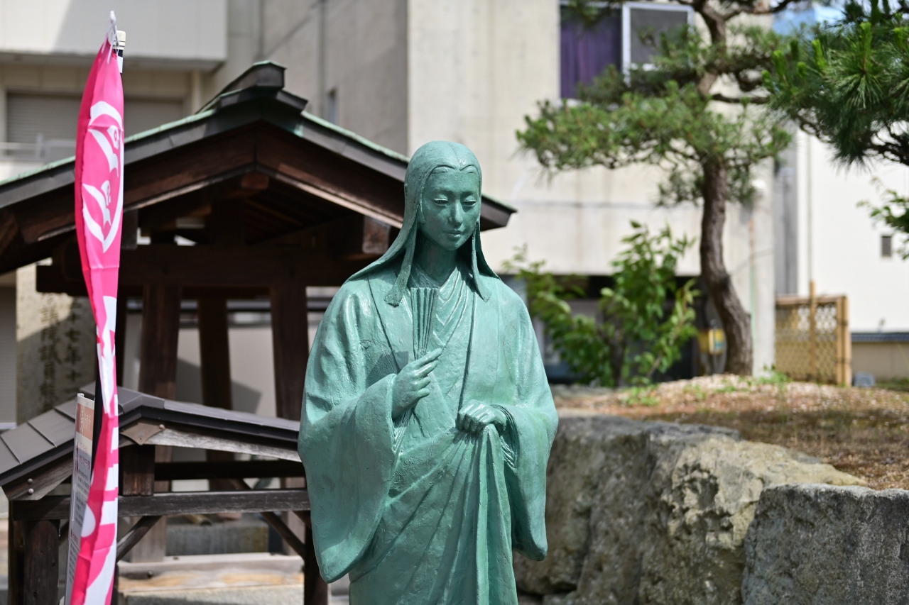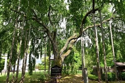 跡継ぎがいなかった武烈天皇の崩御に伴い、福井から呼び寄せられて即位した継体天皇を祭神とする神社だ。歴史の古さから越前祖神と呼ばれる。植わっている木がいい。参道にはタカオモミジがあるが、福井市第1号天然記念物という貫禄だ。樹幹はいたんでいるが、毎年、鮮やかな紅葉を見せるという。さらに、境内には樹齢380年とされるシダレザクラが枝を張る。福井市第2号天然記念物。樹勢はすばらしく、存在感はさすが。境内のあちこちに石碑があるが、それぞれ歴史が宿っており、見どころが多い。
