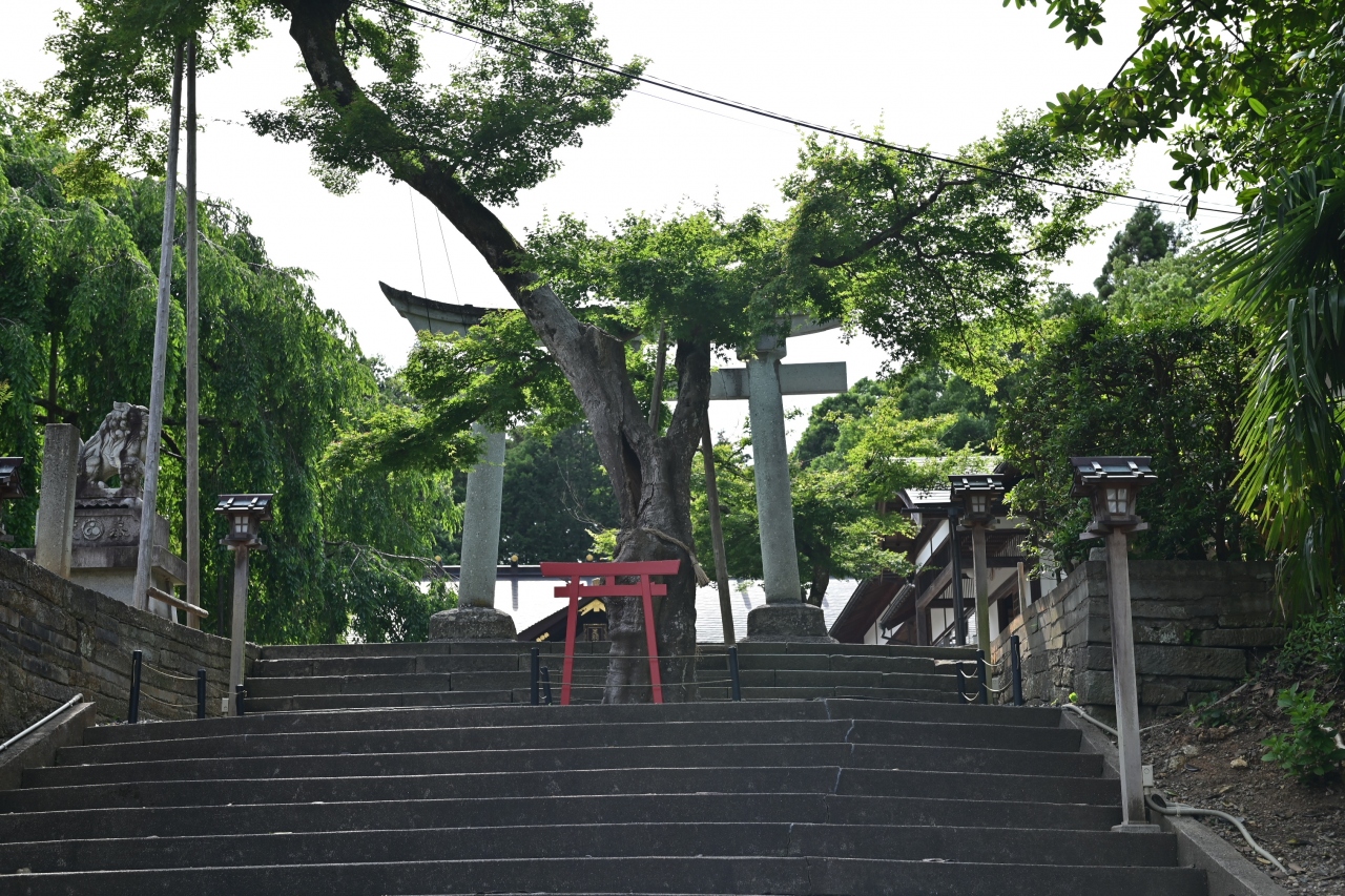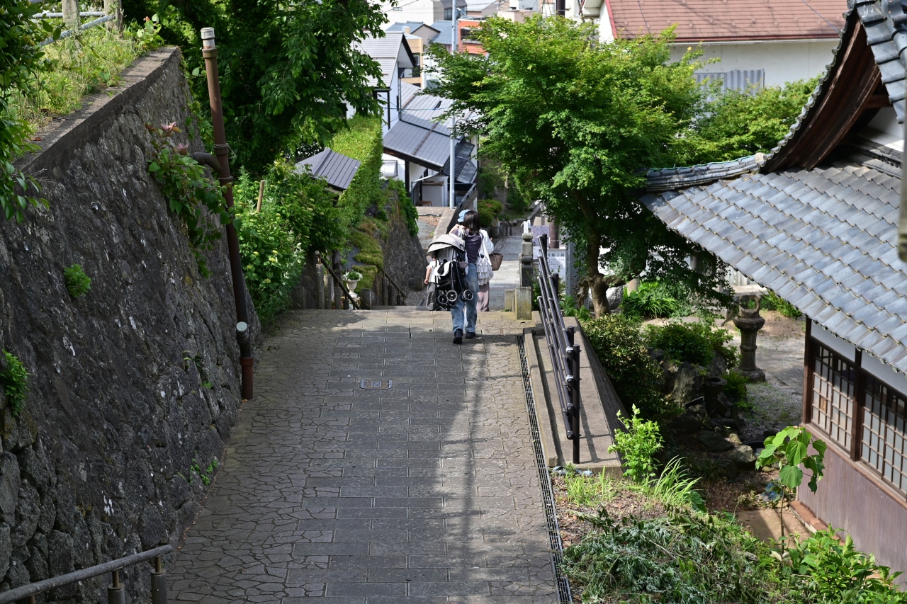 ちょうど、香川県のこんぴらさんの参道のように繫栄していたのかもしれない。現在は足羽山・足羽公園のアクセス道だが、江戸時代までは柴田勝家が一乗谷から勧請した愛宕大権現社(現在は足羽神社)への参道として料亭や茶屋が軒を連ねていたという。現在もその雰囲気はかすかに残る。百四十五段の階段坂で、春と秋には「灯の回廊」を開催する。この日は百坂からアクセスし、足羽神社に参拝した。市内にポコッと膨らんだような山なので、市民の散策路としても親しまれているようだ。