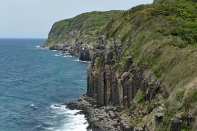 玄武洞(兵庫県)で見た記憶がある。柱状節理。溶岩台地の上に玄武岩が重なり、垂直方向に亀裂が入って五~七角形の断面を作ることにより、柱がいくつも立っているような形になる。ここは断崖絶壁にあり、波に洗われてさらなる複雑な形を呈する。規模も大きい。南北に500メートル、高さ約20メートルという。まるで二時間ドラマのクライマックスに使われそうな断崖だ。「ダン、ダン、ダーン」というドラマのテーマ曲が頭にリフレインしそう。