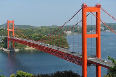 初めて渡ったのは平成3年だったが、その時は通行有料だった。今回は通行が無料化されていたことに時の流れを感じた。生月大橋がブルーなのに対し、真っ赤な橋桁が印象的だ。架かってから時間を経ていることもあって周辺に公園が設けられるなど観光地化していた。橋から見下ろす平戸瀬戸はとても絶景。助手席で渡りたい橋の一つだ。