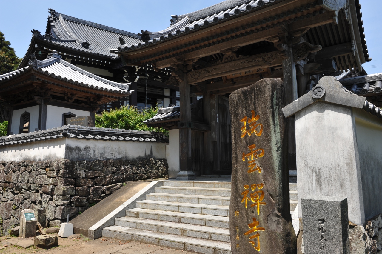 平戸の景観で全国的に有名な「寺院と教会の見える風景」の一角をなす寺院だ。曹洞宗のお寺で、13世紀終盤に建立された。平戸松浦家の氏寺だった時期もあるという。境内にはオランダ商館長と日本人女性の娘で、鎖国令により日本に戻ることがかなわなかったコルネリアにまつわる「コルネリアの塔」があった。塔はコルネリアが父親の供養のために平戸の親類に塔の建立を依頼したものという。同じく景観を構成する光雲寺の下にあり、教会と光雲寺と瑞雲寺は石畳でつながっている。