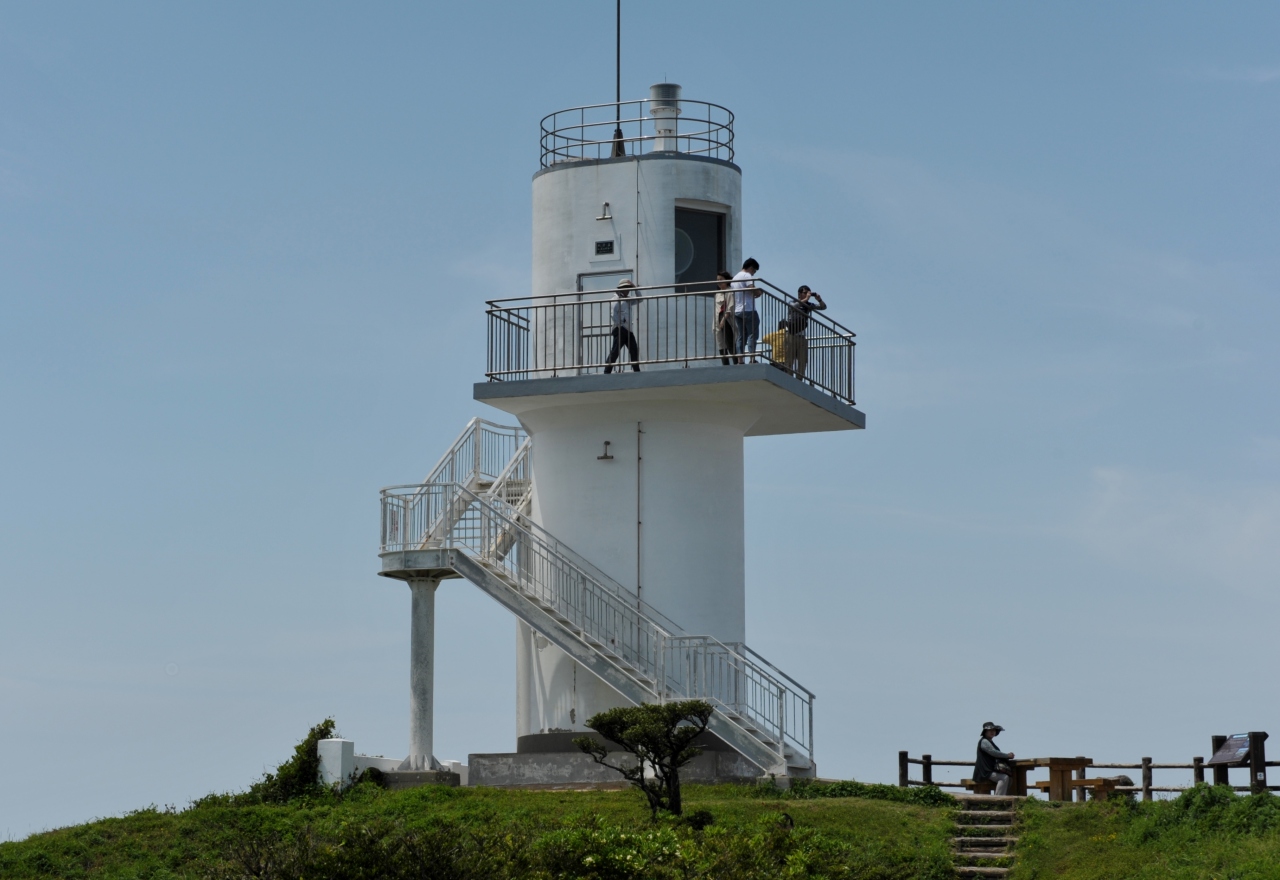 生月島の最北端にある断崖絶壁に立つ無人灯台だ。普通の灯台は内部のらせん状階段を上がることができるが、この灯台は珍しく展望所が設置されており、すばらしい景観が眺望できる。足摺岬とならぶ360度見渡し型灯台だろう。岬の陸部分には、はまゆうの群生地がある。「ばえ」の文字がうまく打ち出せないが、突出した岬の代名詞だとは想像できる。