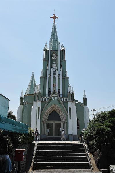 周辺のお寺とともに「寺院と教会の見える風景」を織りなす教会だ。建立は1931(昭和6)年。すでに禁教令が解かれて時間がたち、キリシタンたちが弾圧の手から逃れていた山里から平戸の中心部に移住し始め、信者が増えたことから建設されたという。この時期の教会だから中心部に堂々と建立され、寺院とマッチングした風景が生まれたのだとしみじみ感じる。観光地ではあるが、信仰の場でもあるので内部の見学などは制限されている。それでも足を運びたい雰囲気がある。