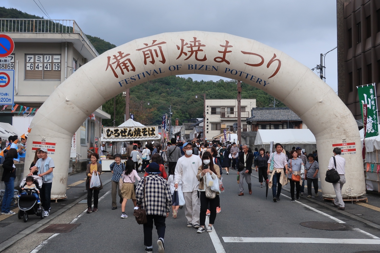 10月第3週の土・日曜日に実施される備前焼の大売り出しイベントだ。JR伊部駅一帯に広がる備前焼の店、窯元などが一斉に2割引きで販売する。さらに同駅近くの広場、駐車場、空き地などに個人の作家やショップがテントで出店しており、その数は数え切れないほどだ。要所要所にショップの位置を書いた地図が配布されているので、まずはそれを入手してから散策を始めるのがいい。公共交通ならば問題はないが、マイカーで行くならば駐車場は混雑する。無料の駐車場が多数設けられているので下調べしてから行くのがいい。