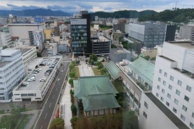福井市2泊3日の旅行で利用した。福井県庁と中央公園を挟んだ位置にあり、隣りは結城秀康や徳川家康を祭神とする佐佳枝廼社(さかえのやしろ)がある。都市の再開発で建設されたのではないかと思わせる建物で、佐佳枝廼社と駐車場を介してつながっており、一階は結婚式関連のテナントが入居している。宿泊だけでなく、会議やパーティー、結婚式などシティホテル的な機能にも力を入れている印象だ。建物はそう新しい方ではないが、部屋の広さはまずまず。駅からは10分弱歩くが、繁華街に近接した場所だ。ロビー・レストランは5階。ウエルカムドリンクのうちソフトドリンクは飲み放題だった。