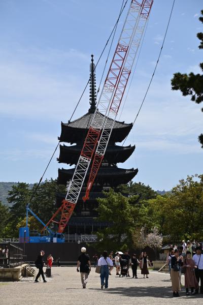 南円堂の藤が満開の時季だ。お堂の前でしばらく眺めていると、見知らぬおじさんが寄ってきた。「アンタ、あの木を知っているか」。南円堂の前を指さして言う。黄色い実が見える。「キンカンかな」「違う」。即座に否定された。門前の黄色い実…。そうか右近の橘だ。「当たり!じゃあ左にあるのは?」「フジでしょ」「なぜ、フジなのかわかるか」。右近の橘とくれば左近の桜だ。なのにフジとは…。おじさんが一言。「皇居の左近が桜だから、そのまままねては非礼と考え、フジにしたんだよ」。興福寺は藤原氏ゆかりの寺。天皇家や世論に配慮したのか。同じ藤原家ゆかりの春日大社、宇治の平等院もフジが有名だ…。そこまで合点がいったとき、おじさんは自転車で去って行った。