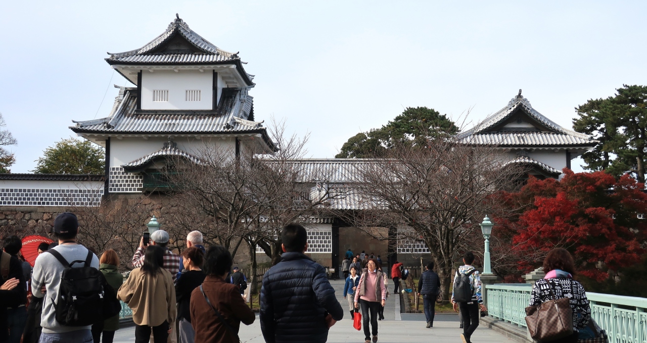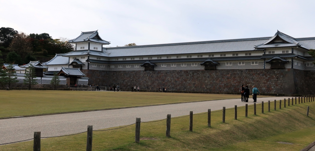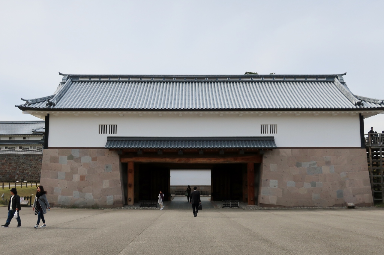 長らくこの門が金沢城の正門だと思い込んでいた。大手門に石垣以外の遺構が残っていないことや兼六園から続いて観光するルート上に位置するからだろう。兼六園側から見た風景は金沢観光を代表する「絵」の一つだ。もともと金沢城のからめ手門で、重要文化財に指定されている。張り瓦が品の字なのがいい。