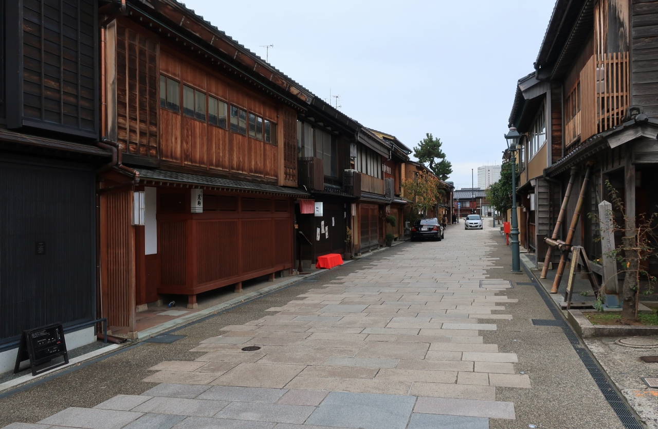 武家屋敷が連続して残っているまちは全国に数多くあるが、金沢はそのうちでも飛び抜けて有名だ。昔のまま残っているというよりも、点的な保存ではなく面的な保存がうまくいっているからだ。長町武家屋敷跡の土塀はその面的な保存がうまくいっている好例だろう。風水思想の影響だと思うが、黄土色の壁がずっと続くさまは面的保存の最たるものだし、色彩も景観の重要な要素なのだとあらためて教えてくれる。城下町の道は少し曲がったり、交差点が食い違ったりと防御策の名残が残っているものだが、金沢の土塀もそうだ。現地では「曲がり真っすぐ」というらしい。曲がり真っすぐな土塀は武家屋敷群を代表する景観なのだ。