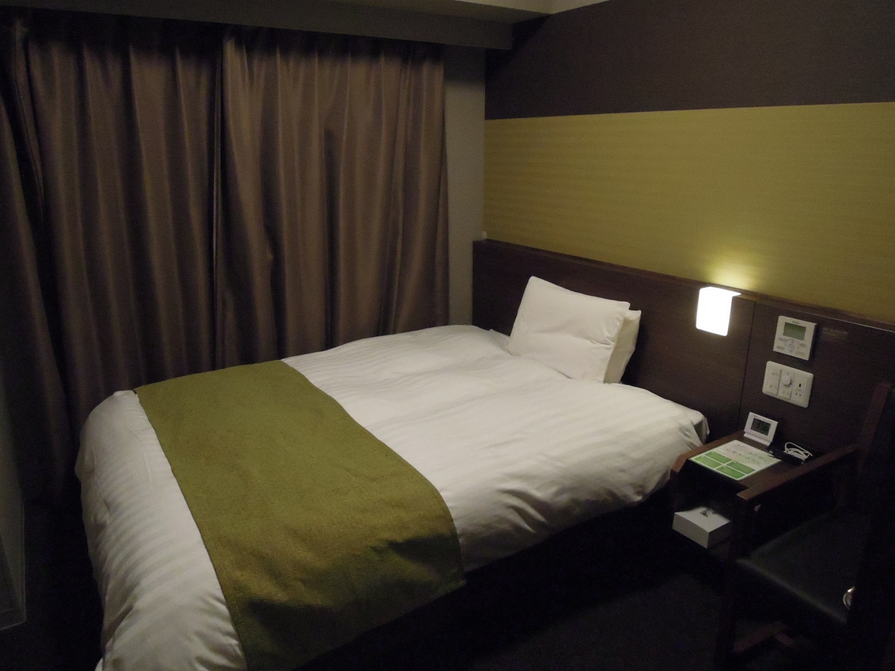 このホテルは立地が実に便利だ。JR出雲市駅のすぐ南側にあり、傘もいらない距離だ。このチェーンならではの独特なサービスが多い。部屋はダブルベッドが基準で、深夜に夜泣きそばの無料サービスがある。個々の部屋はシャワーだけで、大浴場を使うタイプだ。携帯充電器などビジネスマンにとって便利な備品がそろっている。同じ敷地内ですぐ隣りがライバルのビジネスホテルなのもちょっと不思議だ。