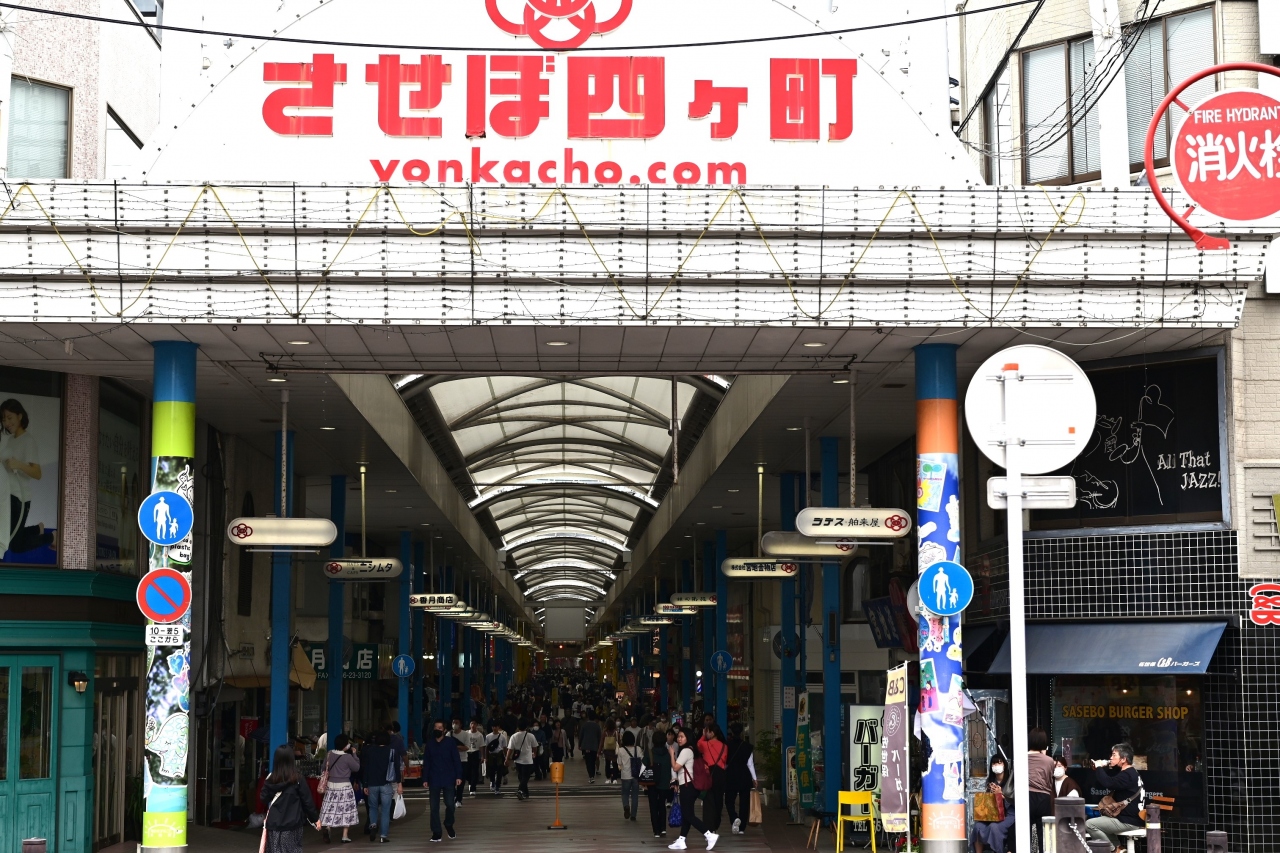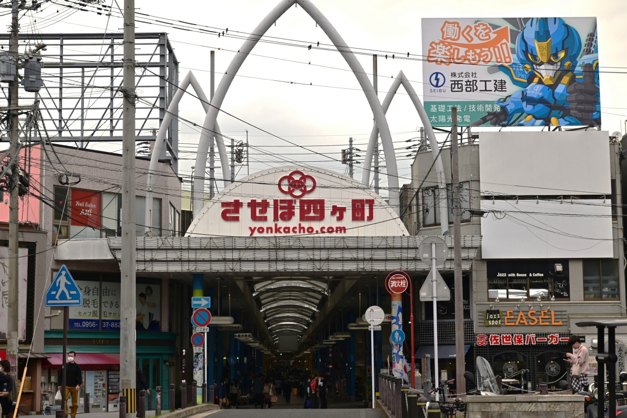 中心市街地活性化のモデルケースとして紹介されているのが、させぼ四ケ町商店街だ。長いアーケード商店街を舞台に活性化イベントを連発し、消費者や交流人口を集めている。平地が少ない地形だけに中心部の商店街は天然のコンパクトシティを形成しており、すり鉢の中心部に人が集まるような効果を発揮してきた。長い商店街の中に、専門店と大型店が共存しているのが魅力だ。さらに佐世保バーガーやレモンステーキなど名物を随所に織り込んでいる。商店街が観光資源の一つになる活性化のパターンを具現化している。知り合いの佐世保出身の人は商店街のことを「おマチ(街、町)」と呼んで、特別視している。
