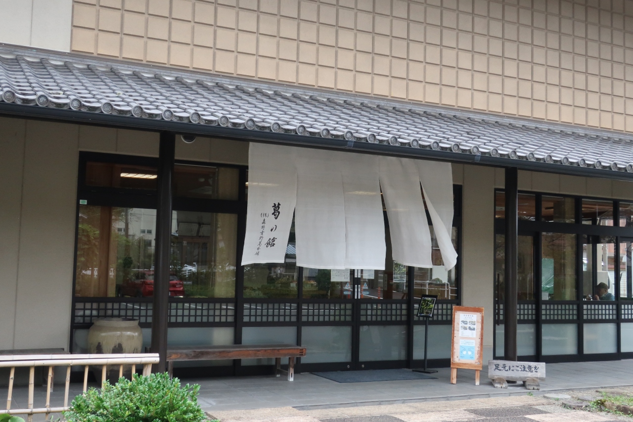 宇陀に本店を置く「森野吉野葛本舗」が直営する吉野葛の喫茶店だ。吉野葛やその加工品を販売する「葛の館」内にある。葛の館は幹線道路沿いにあり、駐車場もあり、車での寄りつきがいい。葛きり、葛餅、葛湯、抹茶のほか、賞味期限3分間をうたう、週末限定の「生珈琲葛饅頭」がある。この日は「生珈琲葛饅頭」をオーダーしようとしたが、すでに売り切れ。人気商品だけに、賞味期限だけでなく、注文できる時間も限られている。